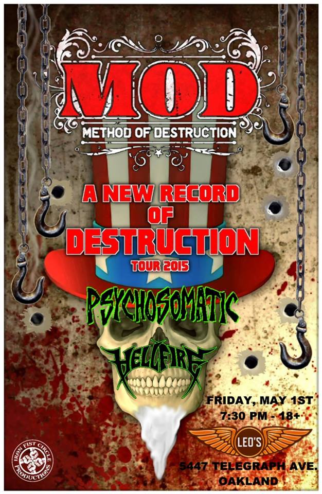 From the depths of Sacramento California the crossover thrash metal, punk rock band PSYCHOSOMATIC was twisted into form in 1988. Spewing forth chaotic blasts of jackhammer style guitar picking on top of super tight speed drumming, ripping fast bass guitar lines and ferocious vocals, spitting out lyrical topics ranging from anti-establishment social issues to horror and insanity. The Sacto thrashers barrage listeners with fast, tight, punk style energy songs into the technical darkness of metal. Psychosomatic has carved their trench in the underground thrash metal world with several US tours, leaving blistering eardrums in their wake.