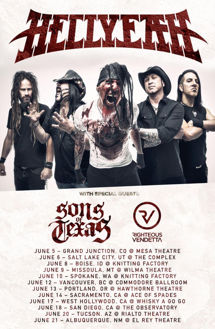 Righteous Vendetta have announced that they will be supporting heavy rock icons Hellyeah on a stretch of U.S. dates in the month of June. Last month the band released their major label debut album, Cursed, which debuted at #3 on the Billboard Heatseekers Chart with 2,300 units sold. The band will be touring in North America throughout 2017 in support of the new record.
