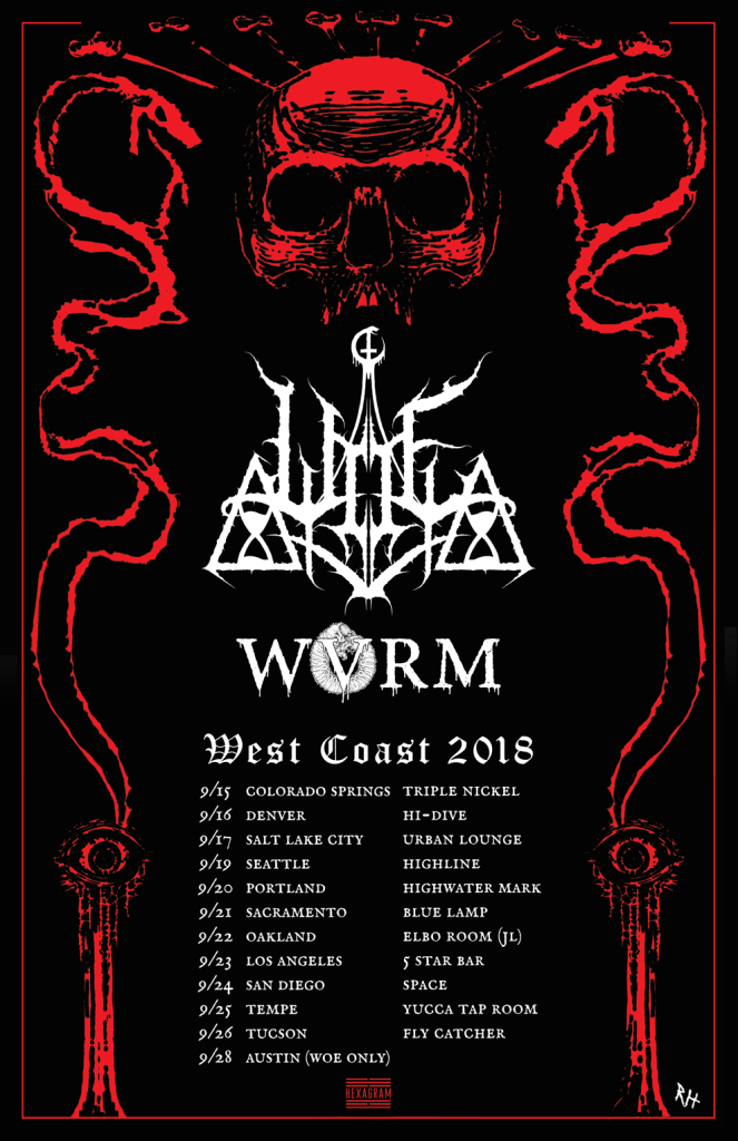 New York black metal ensemble WOE announce a twelve day tour that begins in Colorado Springs on September 15th. Joining WOE for the tour will be Greenville, SC grinding death metal outfit, WVRM. “Wvrm is a band that brings an uncompromising AGGRESSION that we truly appreciate and connect with. We’re glad to be fighting on their side” comments WOE frontman, Chris Grigg.