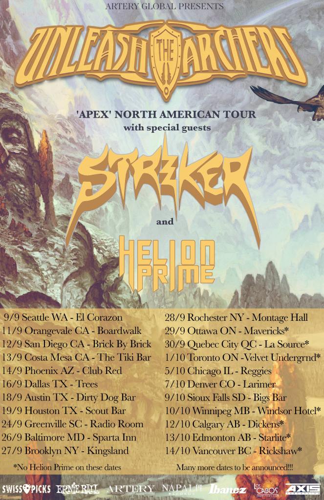 Vancouver, Canada thrashers Unleash the Archers are returning to North America. The band will be out on the road supporting their latest effort entitled Apex, that was released in summer of 2017 via Napalm Records. They have enlisted fellow Canadian rockers Striker to provide direct support and Helion Prime will open the shows. The tour kicks off September 9th in Seattle, WA and runs through October 14th in Vancouver, BC. More dates are expected to be added soon, and a complete list of confirmed dates can be found below.