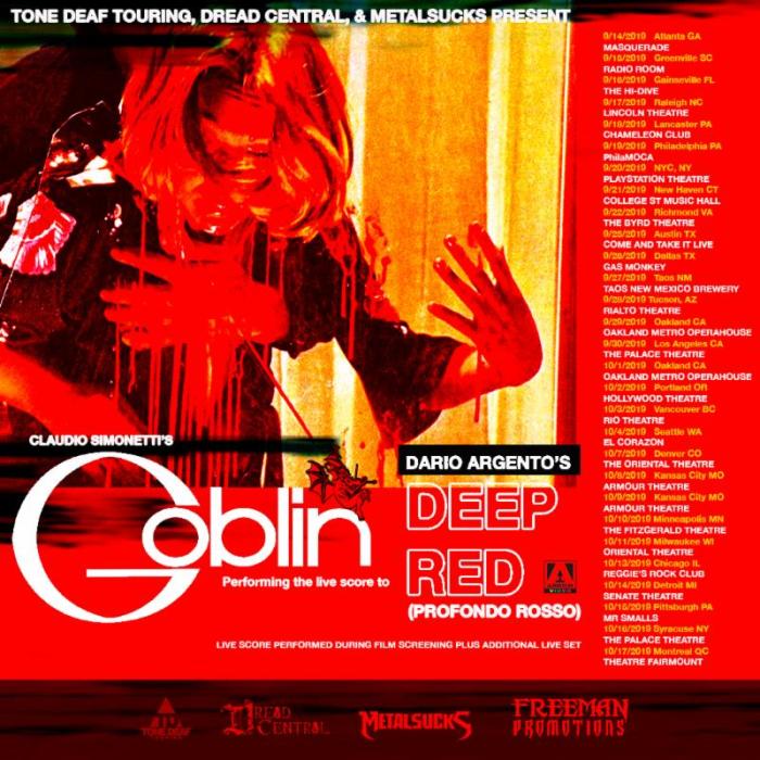 The highly-anticipated tour will feature two sets, the first featuring a screening of Dario Argento’s classic giallo “Deep Red/Profondo Rosso” where they will be performing the score live. The second set of the show will showcase classic Goblin material as well as some selections from their latest releases.