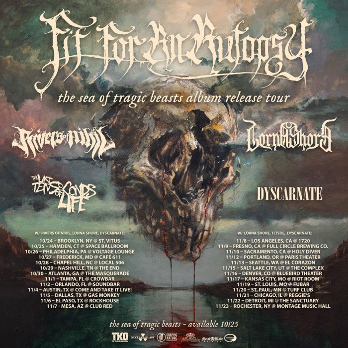 Currently on the road with Cattle Decapitation, Carnifex, The Faceless, and more for Summer Slaughter Tour 2019, Rivers of Nihil will head back out on tour in the USA this fall, this time joining Fit For An Autopsy, Lorna Shore and Dyscarnate! See below for all upcoming dates.
