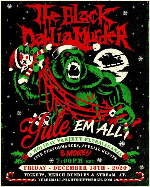 On Friday December 18th at 4PM PST//7PM EST, The Black Dahlia Murder will kick off their “Yule ‘Em All: A Holiday Variety Extravaganza” livestream, featuring live performances, special guests and more!