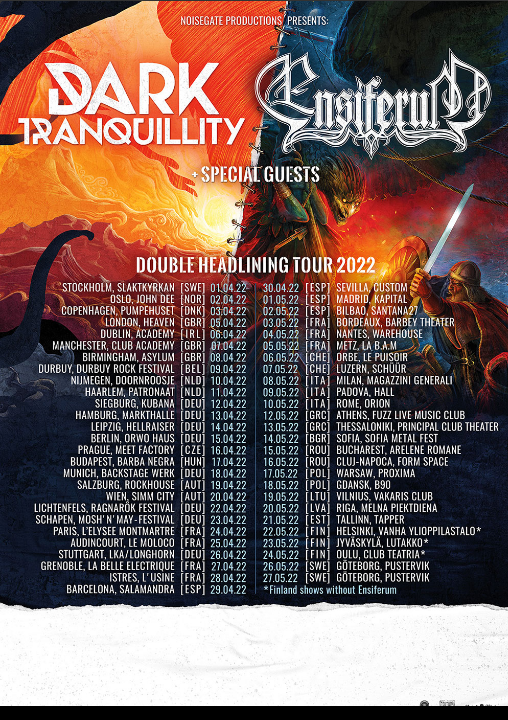 Sammi Hinka comments: “After such a long time of darkness & uncertainty in the live music scene, we are very happy to finally reveal a light at the end of the tunnel! We’ll be joining forces with the legendary Dark Tranquillity for a massive co-headlining tour around Europe. It’s no secret that back in the day, Dark Tranquillity was one of the bands that inspired Markus Toivonen to start Ensiferum and now we are hitting the road with our heroes. How awesome is that?! We are sure that everyone is craving some energetic and ass-kicking live music experiences (we sure are!) and with this line-up, this tour is not to be missed. So get your ticket in advance & help support the return of live music! We can’t wait to see you in the front row!”