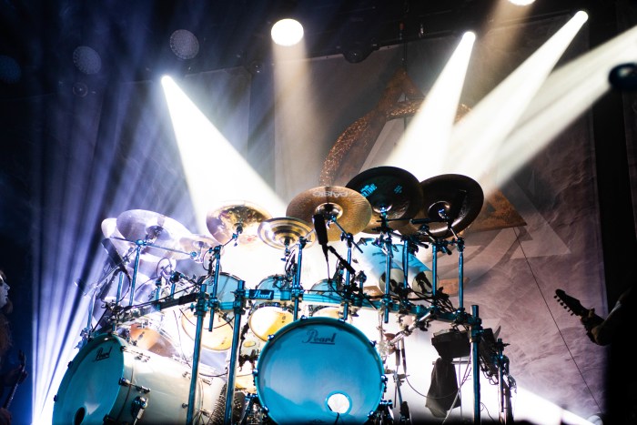 I couldn’t help but notice the huge snake going through a triangle in the background hanging from the ceiling and the sickest looking microphone stands with serpents the band was using.