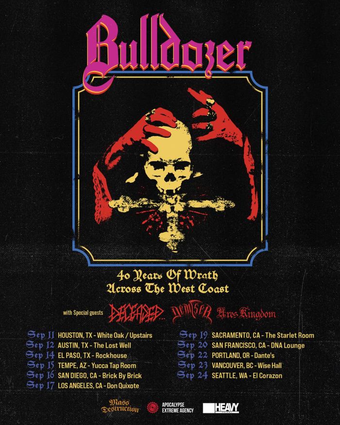 Bulldozer’s upcoming tour, ‘40 Years Of Wrath Across The West Coast,’ has been greatly anticipated by their loyal legions of fans across the globe.